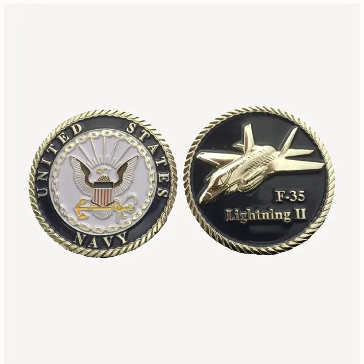 F-35 Lightning II Challenge Coin. This product is Offically Licensed by the Department of the Navy. All royalities paid goes for the support of the Morale Wellness and Recreation (MWR) program for the Navy.