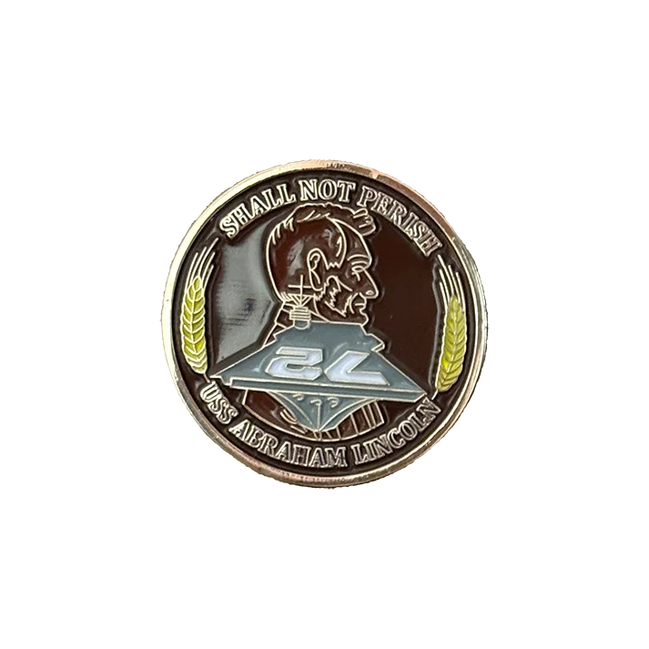 USS Abraham Lincoln CVN 72 pin is a blue antiqued silver plated pin. This pin works well as a hat pin or lapel pin and looks great on a Military Veterans Ballcap or Veterans Service Cap. It's a wonderful addition to any pin collection and makes a great gift for those who served on the USS Abraham Lincoln. Product is Offically Licensed by the Navy.