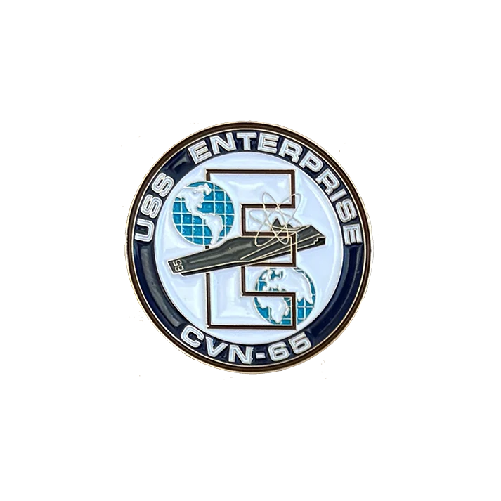 USS Enterprise CVN 65 pin is a blue antiqued silver plated pin. This pin works well as a hat pin or lapel pin and looks great on a Military Veterans Ballcap or Veterans Service Cap. It's a wonderful addition to any pin collection and makes a great gift for those who served on the USS Enterprise. Product is Offically Licensed by the Navy.