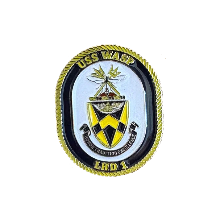 The USS Wasp LHD 1 pin is a blue antiqued silver plated pin. This pin works well as a hat pin or lapel pin and looks great on a Military Veterans Ballcap or Veterans Service Cap. It's a wonderful addition to any pin collection and makes a great gift for those who served on the USS Wasp. Product is Offically Licensed by the Navy.
